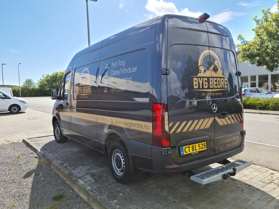 Her har vi igen monteret bilreklame på en bil for Byg Bedre I/S. Vi har monteret Oracal 751-930 Gold på den koksgrå bil, og udarbejdet nogle stafferinger med ud skåret info-tekst så denne er samme farve som bilen.